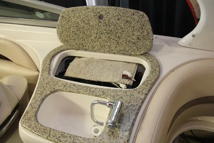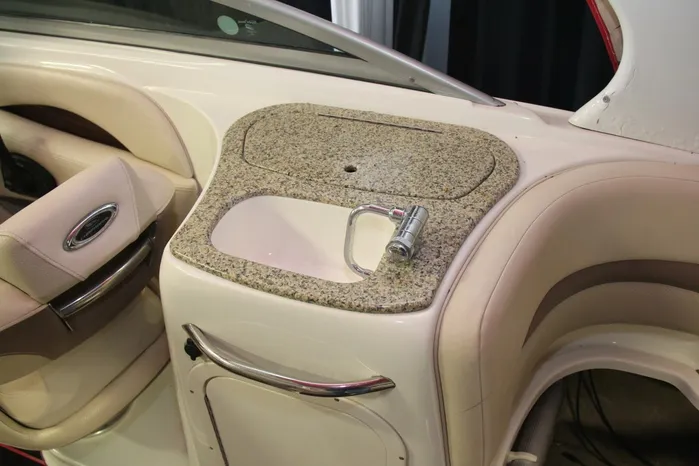 Every inch of this Chaparral is designed for comfort and utility. The enclosed head, complete with a Vacuflush system and sink, ensures privacy and convenience during long days on the water. The generous storage spaces—including a dedicated ski locker—keep your gear organized and accessible, while the dual-battery system provides peace of mind on every adventure.