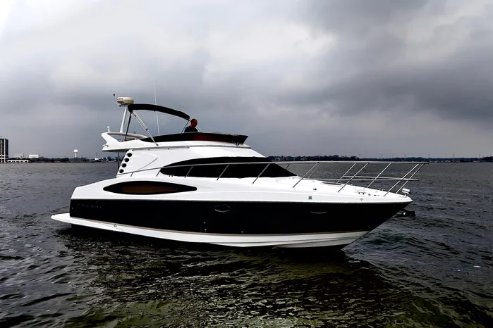 - Wide Molded-in Fiberglass Steps with Handrails for Easy Access to the Flybridge