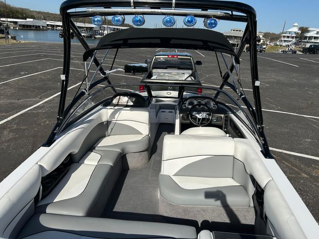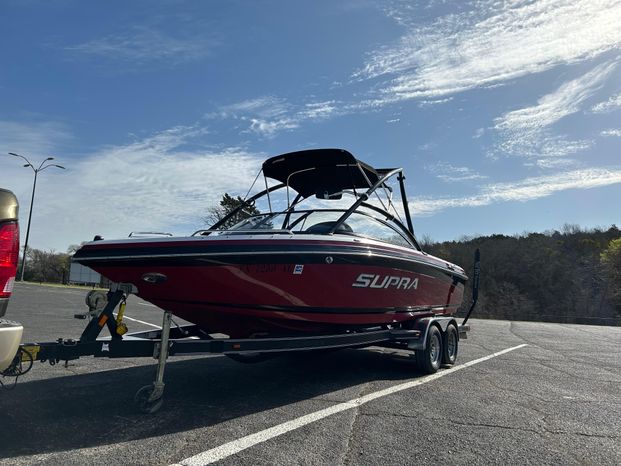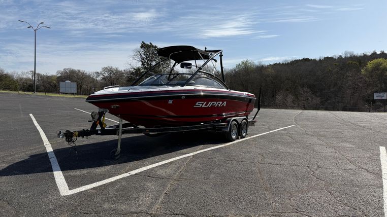 Give every athlete in your family all the big air they want with the Sunsport 22V. Massive, tournament quality wakes of much bigger boats are part of the 22V package. With the agility of a champion, the maneuverability of the 22V at both high and low speeds is greatly enhanced by the deep Drop V keel and tracking fins. And when the water gets rough, the DropV keel allows the 22V to track straighter, ride softer and more comfortably, and to slice through chop more smoothly than virtually any boat in its class. The walk-through bow design provides everyone on board plenty of room along with easier passing through the cockpit. The unique Sundeck Stepway, hidden under the swim platform cushions, makes it easier to get in and out of the boat while eliminating the need to stand on upholstery. Two steps built-in to the back bench also help keep feet off vinyl and conceal a super deep cooler, plus an air compressor that will make quickwork of filling even the largest tubes. Versatile double-up and triple-up seating provides rear-facing seating that gives up to six spectators a perfect view of all the rider's high-flying action. And, like all Supras, the Sunsport 22V features interior vinyl with Nano technology for added stain resistance.