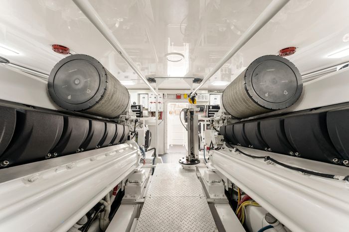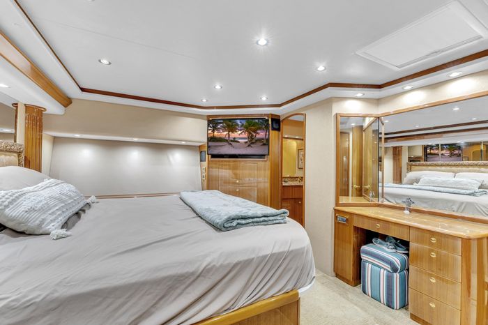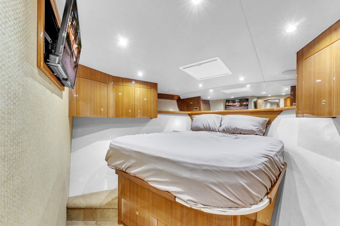 Triple B features a four (4) stateroom, five (5) head layout with an additional day head in the Salon. Crew quarters with engine room entry and forward queen VIP. Custom etched Channel glass bulkhead window and the Channel glass highlights the companion way. Interior soft goods updated in 2024-2025. This viking is a must see!