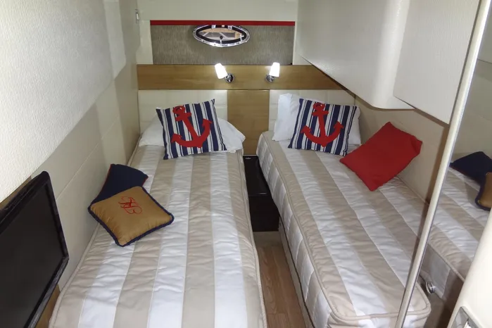 Guests can be comfortable in the Aft Cabins twin berths that easily convert to a queen size berth. A separate