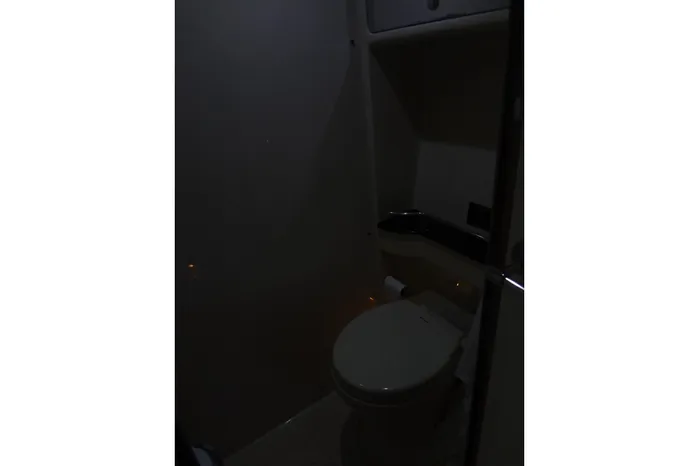 Just forward is the yachts electrical panel. Next aft is the head and shower compartment with a Vacuuflush