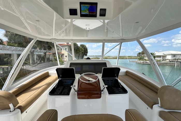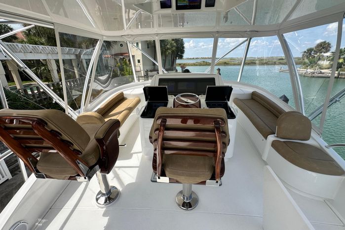 The cockpit and flying bridge have been designed around the experiences of a thousand fishing tournaments, but you don’t have to be a hard core blue water angler to appreciate the built in conveniences and amenities like a center console helm station, or observation mezzanine in the split level cockpit.