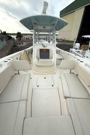 Fresh Water Washdown SystemRaw Water WashdownElectronically adjusted forward table/sun lounge (flushes into floor)Boarding ladder (covered)Forward console access doorFresh water at transom (25 gal tank for 2 sinks and shower)Fresh water sink in consoleBow rail (fully recessed)Head closet w/ hangersHead comfort appointments (towel bar, toilet paper holder, mirror)Opening port window(s)Roomy walk down head area with sink and Corian topSide dive, tuna and dockside boarding door (inward opening)USB outlets and cupholders throughoutCockpit insulated fish boxes w/ macerated overboard drains (2, 55 gal)Self-bailing cockpitCleats, heavy duty, pull-up (7)SS gunnel rod holdersStainless steel thru-hulls w/ seacocks below water lineUnder-gunnel rod storage