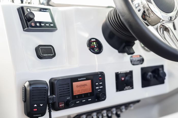 Upgraded Fusion Marine Stereo system integrates seamlessly with smartphones via Bluetooth.