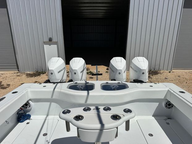 Cockpit Coolers and Tackle Storage on the Aft Side of the Helm Seating