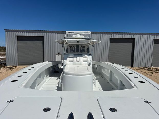 Forward Coffin Box/Sun Pad in Front of the Console with Split Cooler Storage Below
