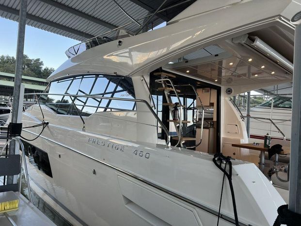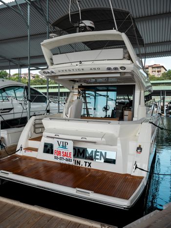 2022 Prestige Yachts 460 Fly, Very clean, freshwater only offered by the original owner! Twin Volvo Penta IPS600 D6 in-line 6 cylinder 5.5L, 440hp with pods. 95 Lake Travis hours. Cummins Onan 13.5Kw diesel generator. Two stateroom with two head unit luxury motor yacht with fly bridge operation and capt. quarters.