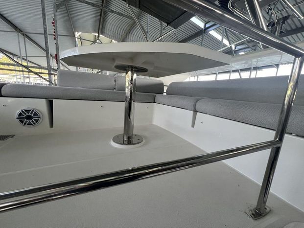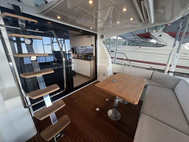 The contemporary layout of the exterior galley located to the aft opens onto an immense swim platform. The very comfortable Flybridge is an invitation to complete relaxation.