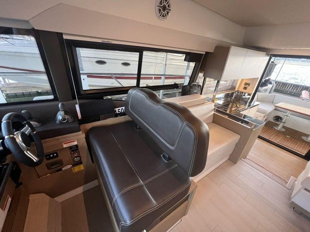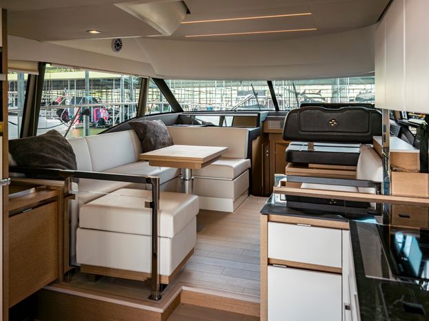 On board, everything has been optimized to offer unequalled space and comfort. Combining the design talents of Garroni Design and JP Concepts, this Flybridge meets all the latest requirements and boasts all the benefits of a true PRESTIGE Yacht.