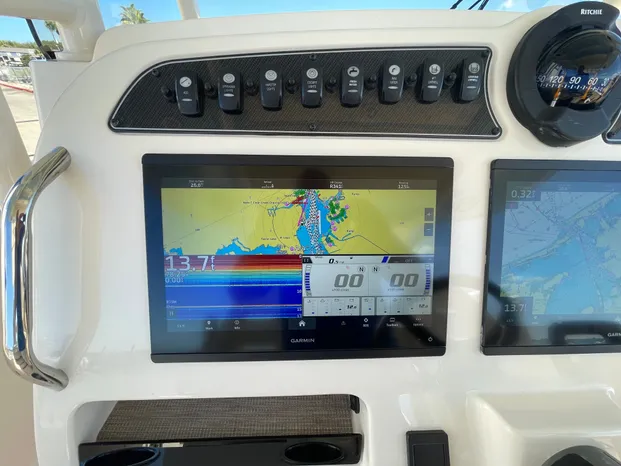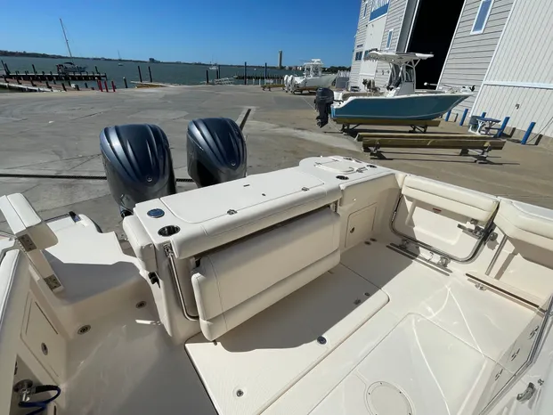 Dry stack stored 2023 Grady White 326 Canyon with less than 100 hours on twin Yamaha F300's including Helm Master joystick control. Yamaha warranty through December of 2026. Garmin Elelectronics package with Dual 16" Displays, Radar, CHIRP Transducer and VHF Radio. For more information contact Skip Pillsbury 713-828-3925.