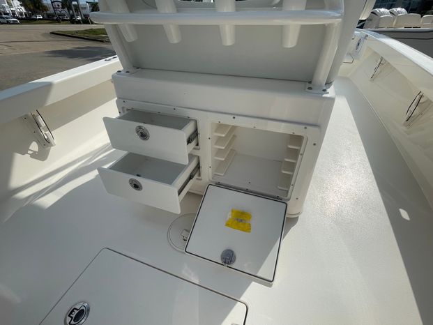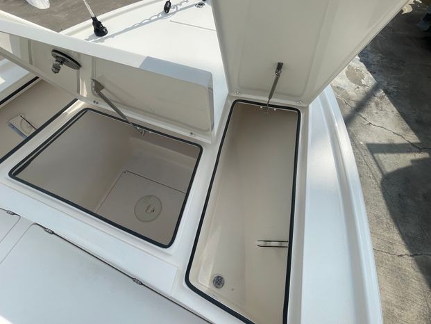 Step into the 2500 Hybrid and you’ll instantly feel the difference of the most spacious bay boat under 25 feet there is. No more feeling crowded or having to move people out of the way to get around. The unique layout also allows for more storage space than you’ll ever need and a 45 gallon insulated fishbox.