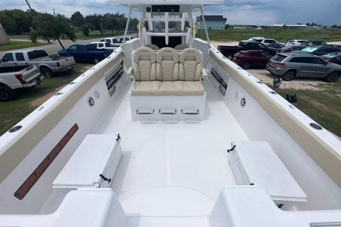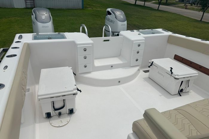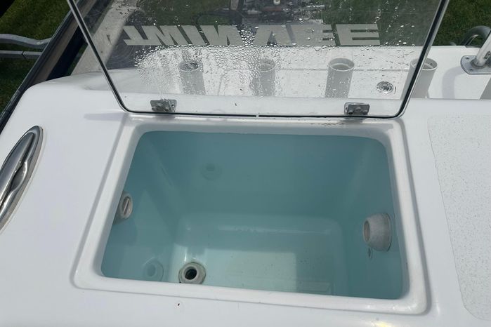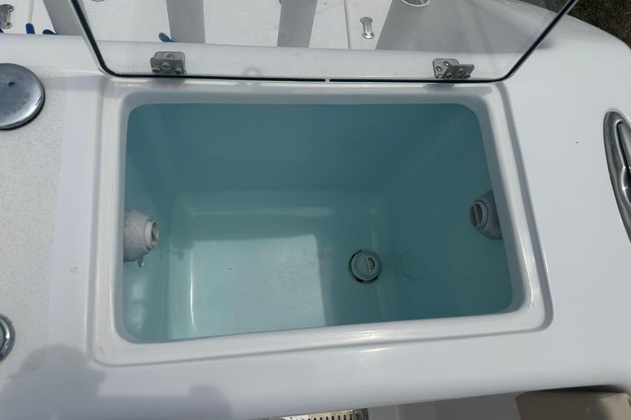 - (2) 45-Gallon Live-Wells in the Transom Top with Clear Lids and Hooker Pumps.