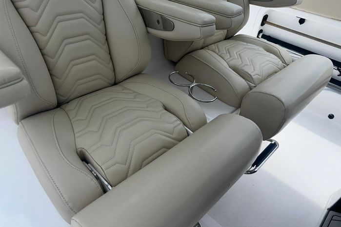 - Cup holders: Stainless Steel (6) (2)-Console, (2) per side gunwale