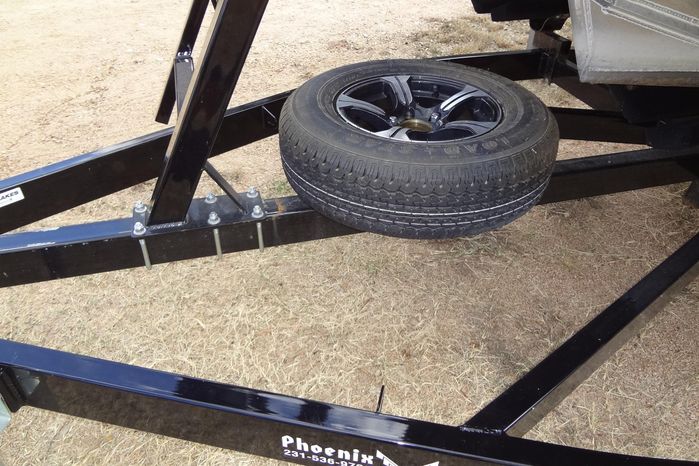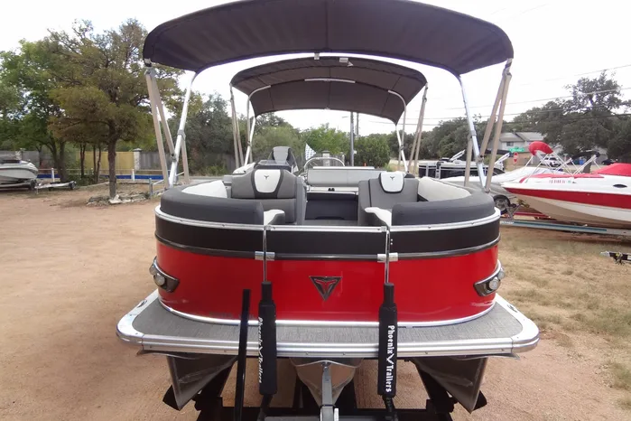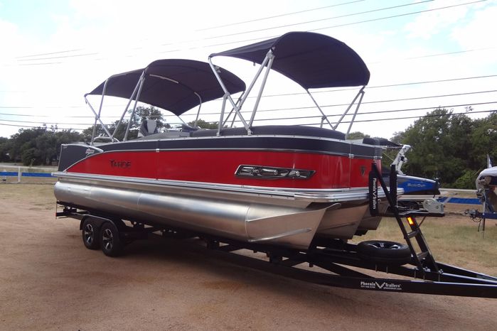 2585 VRL in near new condition, used in freshwater only. Suzuki 200hp 4S outboards with SS 3-blade prop and less than 50 hours. Includes black playpen cover with tent poles, double bimini with folding frame and canvas boots, dual batteries with switch, synthetic woven flooring, stainless ski tow bar and large step swim ladder, large stern sun pad with adjustable back rest, poly helm with smoke removeable wind screen and storage locker, SeaStar hydraulic steering unit with adjustable steering wheel, upgraded FUSION audio package with Fusion sub woofer and marine speakers, flush helm push button controls with Garmin navigation and traditional analog instrumentation with digital info readout. Fiberglass table top with cup holders and shaft, x2 seat cupholders, pop-up changing room with sock (potty not included), LED docking and nav lights, Blue LED cockpit lighting, and stbd stern fishing rod locker. Complete with 2023 Phoenix TA-25-BT with custom alloy wheels and spare with disc brakes on the rear axle, bow boarding ladder and stern strap ratches.