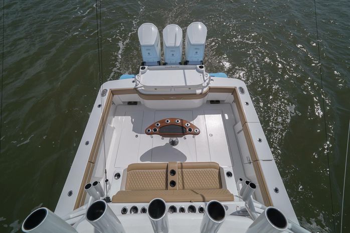 - Molded 2-in-1 Spreader Light Pod with 12V LED Lumitec Maxilume lights aft under tower sunshade