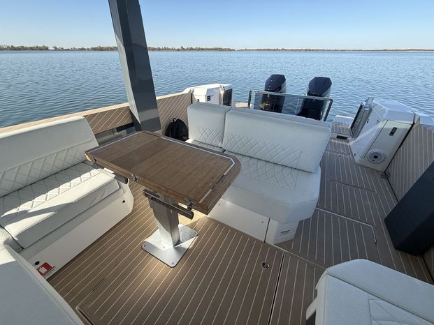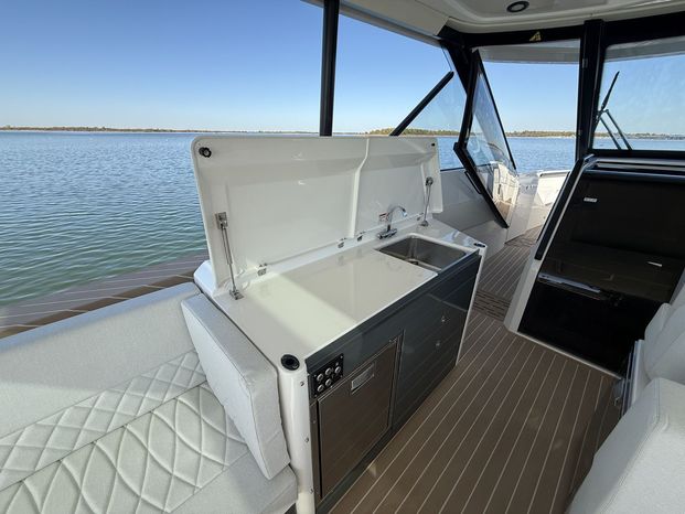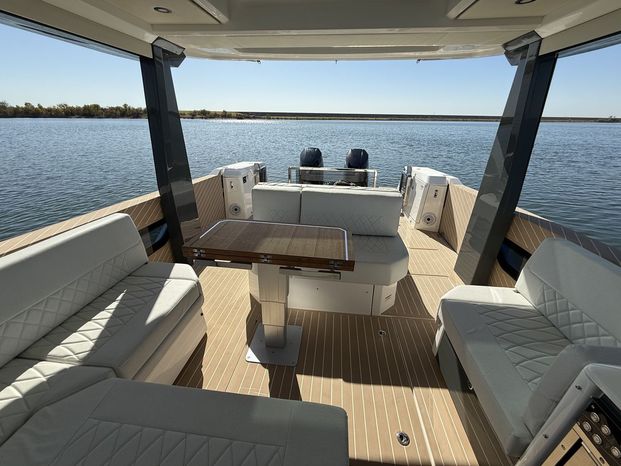 - Access/Safety: Aft glass gates, 8 mooring cleats, and Windscreen wipers.