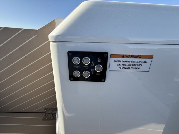 - Deck Feature: Electrically operated foldable terrasses on both sides (Creates almost 4 meters of side deck space).