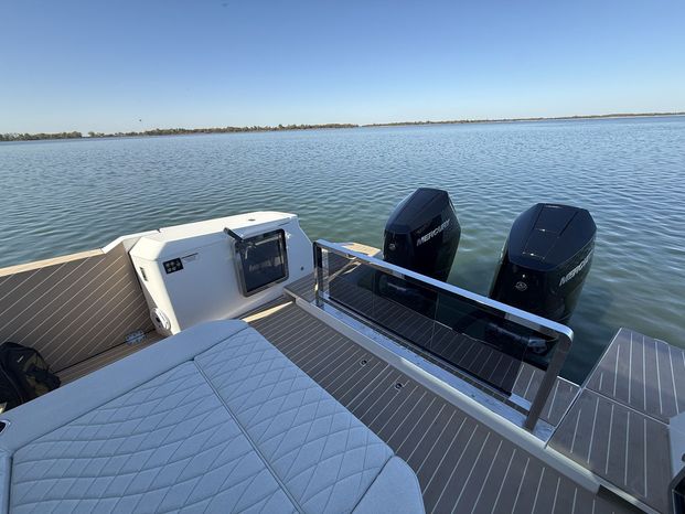 Step aboard the 2025 Saxdor 400GTO, (Stock #217078) where luxury meets unmatched performance. Powered by two robust Mercury Verado engines, boasting a total engine power of 400 hp, this vessel promises thrilling adventures across the waters of Lewisville, TX. Experience the excitement of cruising at exhilarating speeds while reveling in the precision craftsmanship that defines this luxury boat.